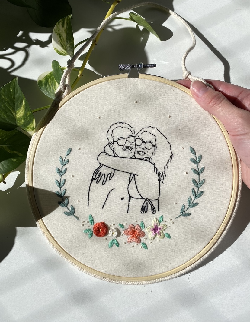 Bordados livres feitos à mão no bastidor de 20cm com a foto bordada em contornos para eternizar aquele momento especial. Pode ser uma foto da família, de um amigo, casais.